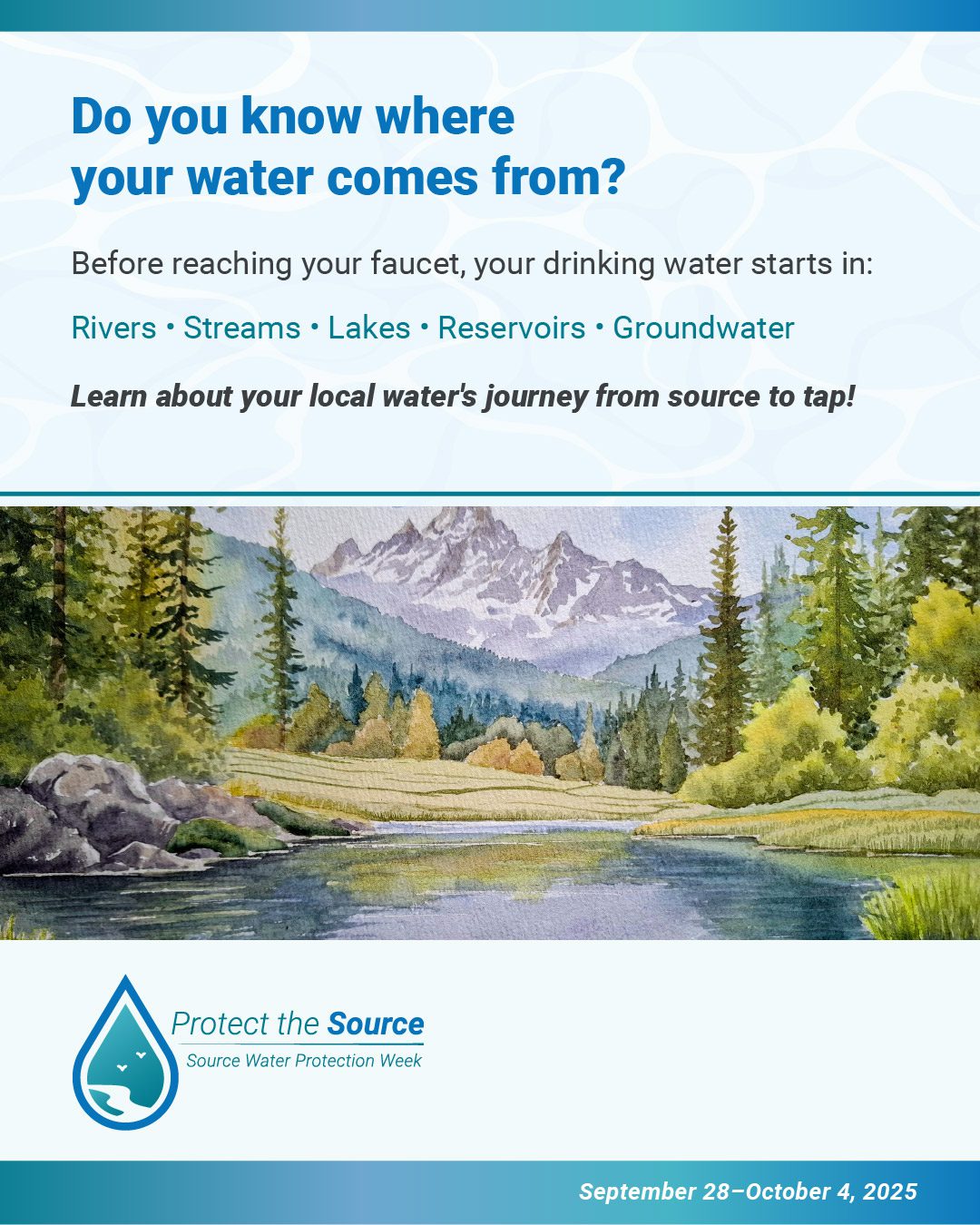 We invite everyone to help “Protect the Source” by spreading the word about the importance of source water protection.